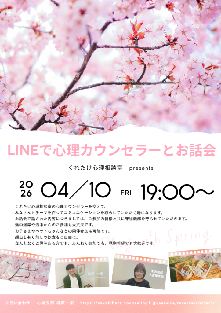 イベント2026年4月1日4月10日(金)19:00~LINEで心理カウンセラーとお話会